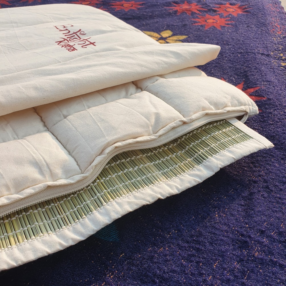 We developed a Kusha meditation seat set made with 100% GOTS certificated organic cotton.